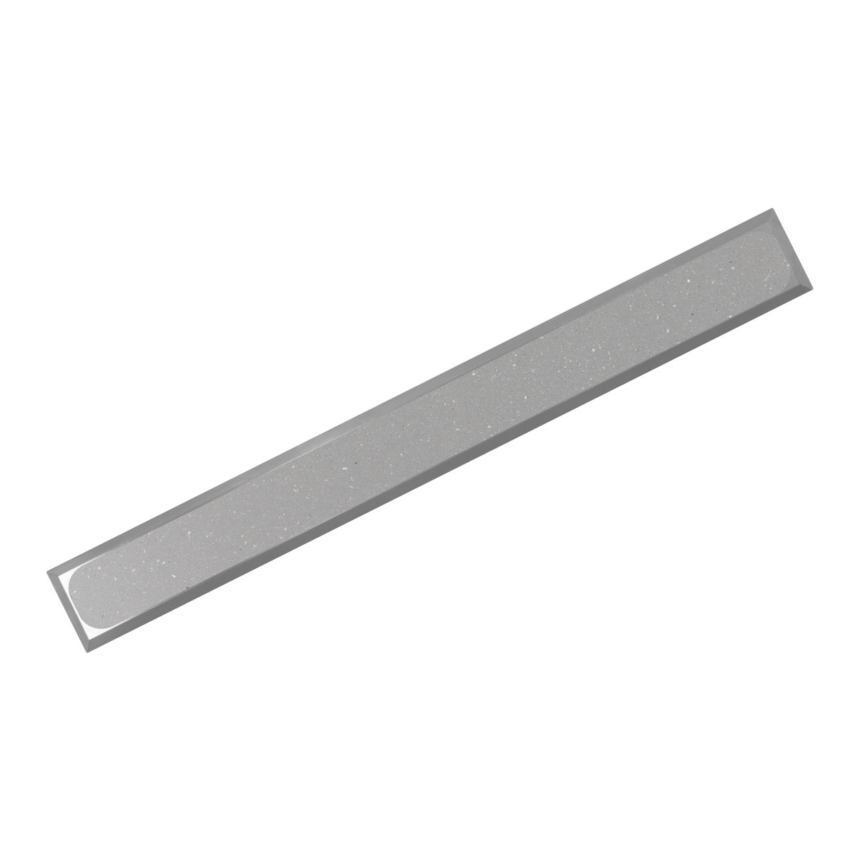 Tactile floor guiding strips in the shape of an angular longitudinal rib, made of stainless steel 304, PVC insert, anti-slip R10. R11 and R12 anti-slip strips are also available.