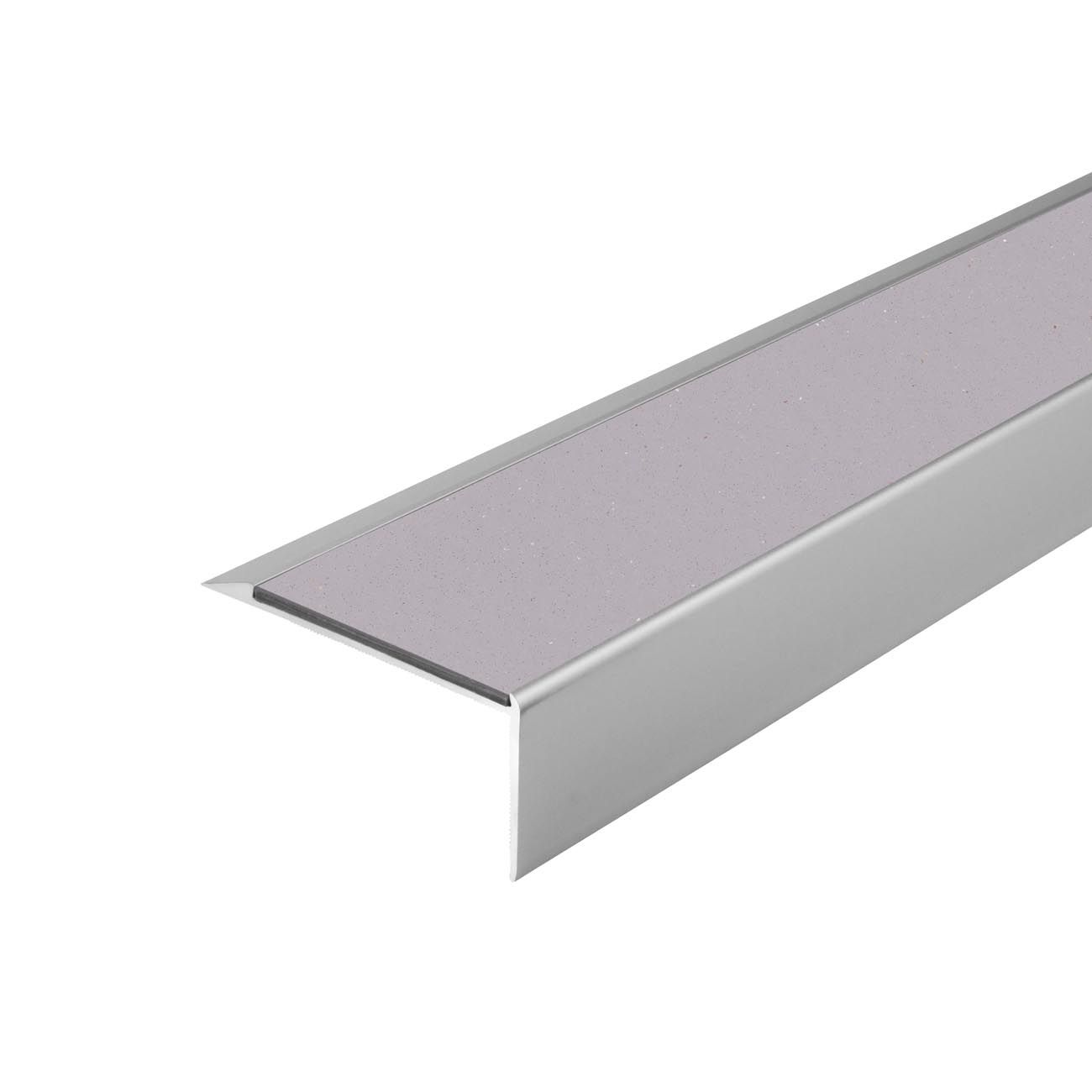 Aluminium stair nosing, PVC insert on the tread side, anti-slip R10. R11 and R12 anti-slip inserts are also available.